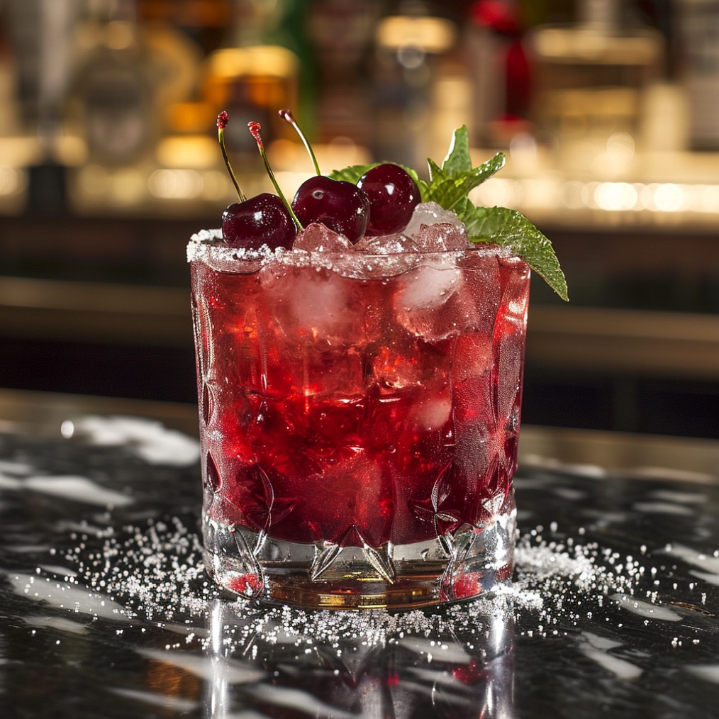 A Cherry Cobbler tastes like a burst of sweet cherries with a hint of citrus tang. It’s a cool, refreshing drink that balances the flavors of fruit and spirit beautifully.